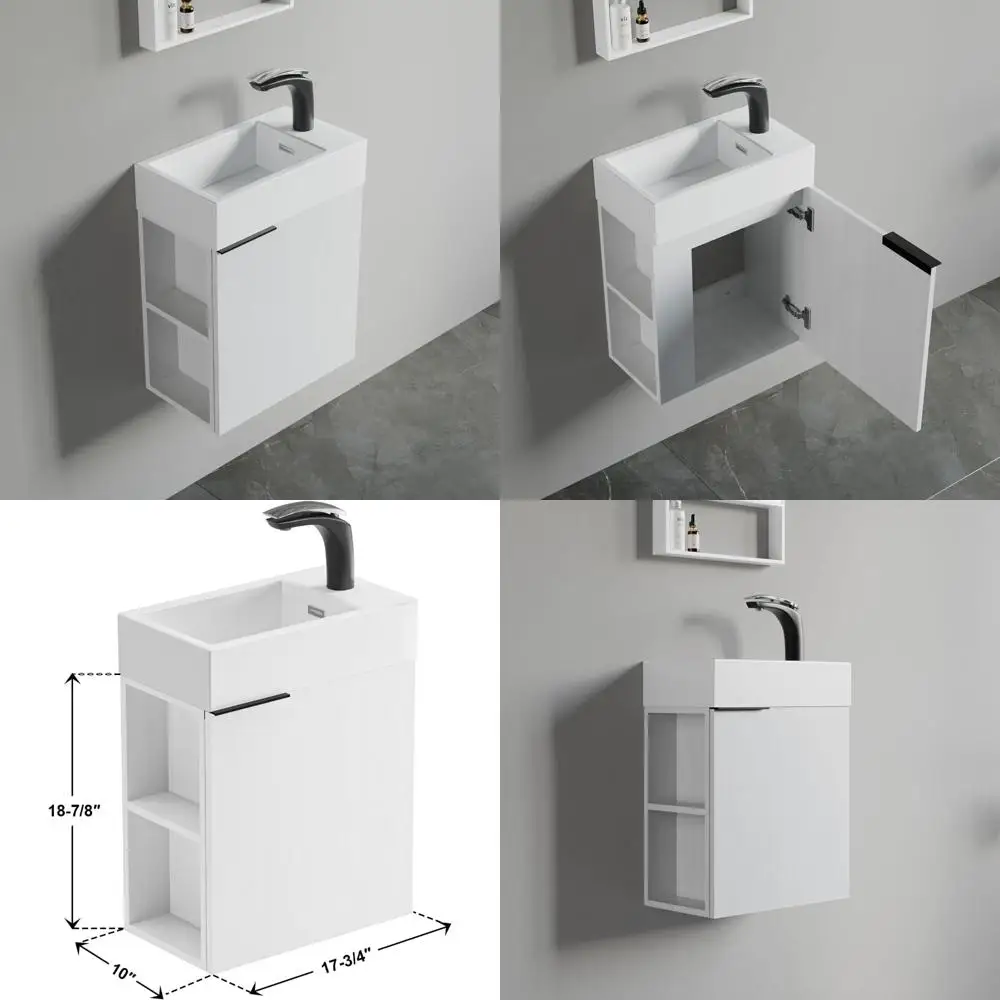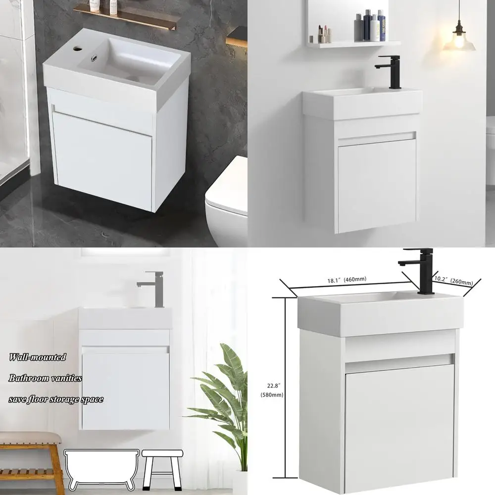 compact 18" wall-mounted vanity with sink and wooden storage cabinet for small bathrooms