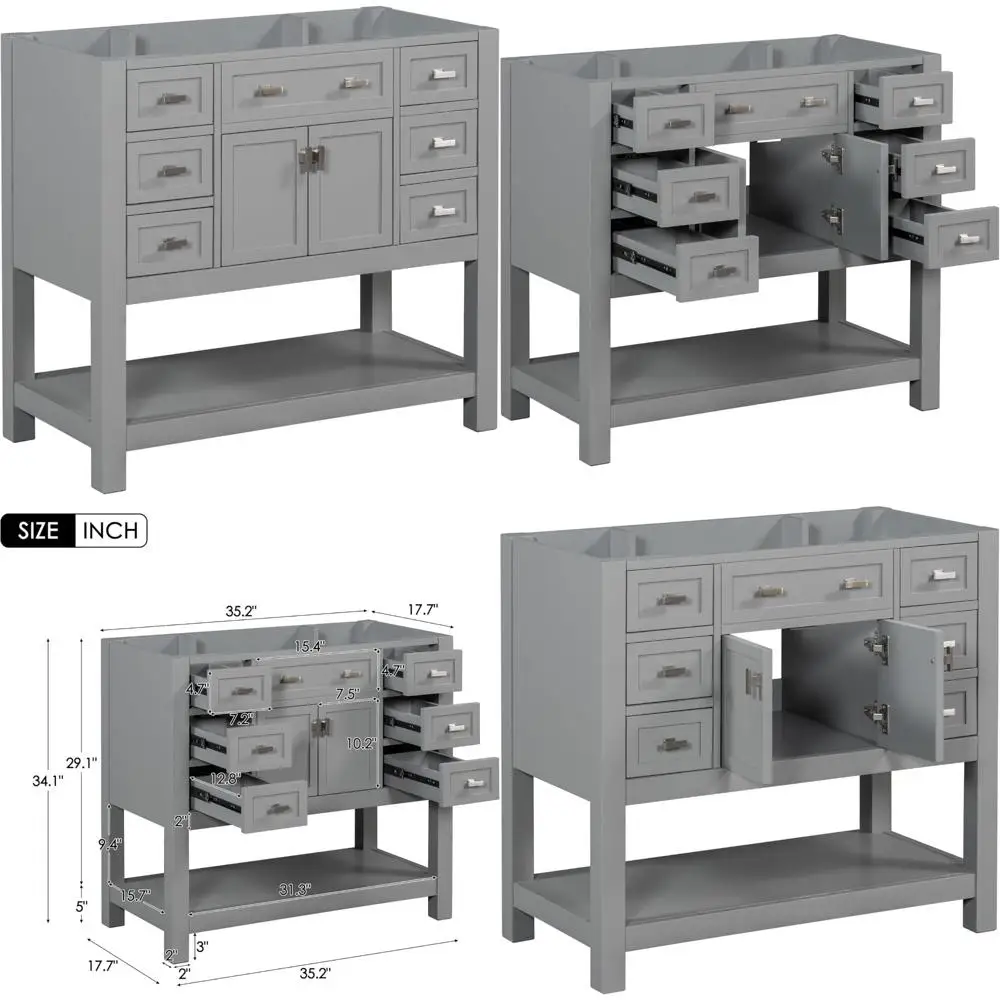 36’’ Bathroom Vanity with Sink Freestanding Cabinet Set Design Resin Basin Undermount Sink