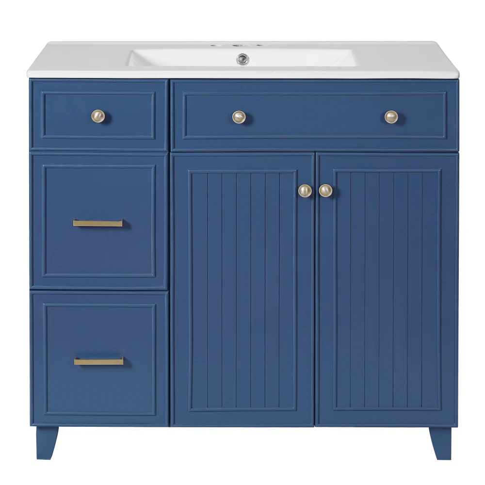 36 inch bathroom vanity with ceramic sink, standard and double drawer, bathroom storage cabinet
